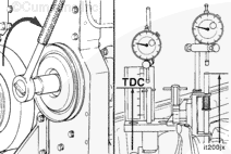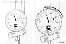 If the crankshaft is rotated beyond the 5.160-mm [0.2032- in] before top dead center position, the crankshaft must be rotated counterclockwise, back to the 45-degrees before top dead center mark.