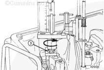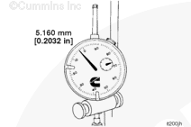 Rotate the accessory driveshaft clockwise, slowly, until the piston travel gauge is at 5.160-mm [0.2032-in] before top dead center.
