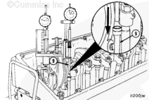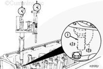 The push rod (9) must be vertically aligned with the plunger rod. If it is not, incorrect timing values will result. Be careful not to drop the push rod into the engine.