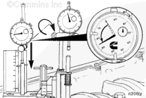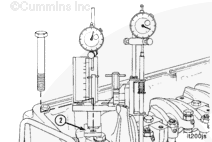 Position the push rod dial indicator contact tip in the center of the plunger rod, and lower the gauge to within 0.63 mm [0.025 in] of the fully compressed position.