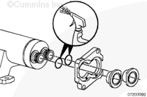 Install two new o-rings on the oil cooler water inlet and outlet transfer tubes.