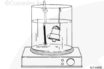 Suspend the thermostat and a 116°C [240°F] thermometer in a container of new lubricating oil. Do not allow the thermostat or the thermometer to touch the sides of the container.