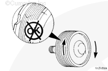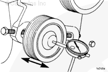 Replace or rebuild the idler pulley if the end clearance is not within these specifications. Refer to the Shop Manual, M11 Series Engines, Bulletin 3666075, for rebuilding procedures, or contact the local Cummins® Authorized Repair Location.