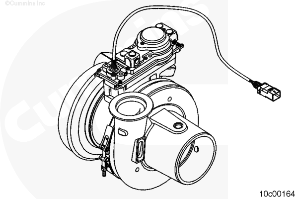 Automotive with CM876 The automotive with CM876 variable geometry turbocharger is electronically actuated. The electronic control module (ECM) sends a command directly to the variable geometry actuator mounted on the turbocharger. See Figure 4. Closing the variable geometry mechanism increases the exhaust gas pressure, facilitating EGR flow through the engine. The turbocharger speed and intake manifold pressure will also increase when the variable geometry mechanism closes, under certain engine operating conditions. Closing the variable geometry turbocharger will also increase the exhaust gas temperature, under certain normal engine operating conditions, and during the aftertreatment regeneration event. This is used to improve the aftertreatment component efficiency. Refer to Procedure 011-999 in Section F for further information regarding the variable geometry turbocharger and aftertreatment system interactions. Opening the variable geometry mechanism decreases exhaust gas pressure, turbocharger speed, and intake manifold pressure under certain engine operating conditions.