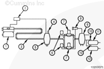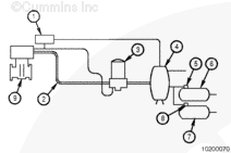 In the 2002 ISM engine, the air compressor receives turbocharged air from the charged air supply before it mixes with the exhaust gas. Since no exhaust gas will be drawn into the air compressor, Original Equipment Manufacturers (OEMs) are able to utilize the same style air compressor and the air tank setup as with the previous ISM engine. This is a two piece line with a hose connection at the rear of the engine.