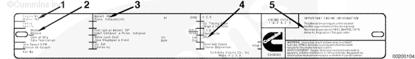 The dataplate is located on the fuel pump side of the engine, on the rocker housing. Have the following engine data available when communicating with a Cummins® Authorized Repair Location. The following information on the dataplate is mandatory when sourcing service parts: