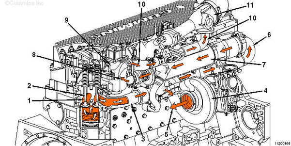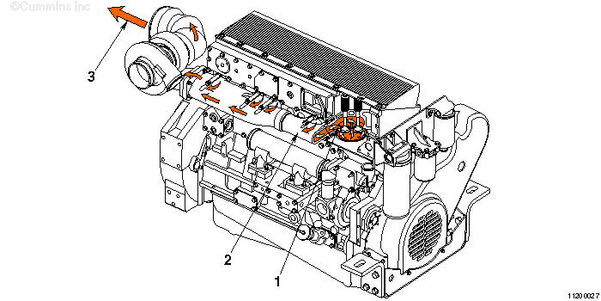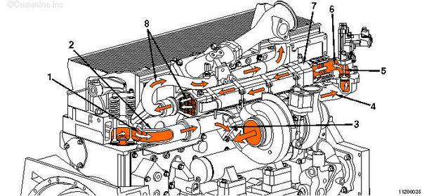 - Cooled exhaust gas from the EGR valve to the EGR mixer