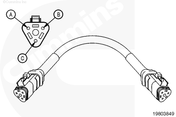 A 3-pin Deutsch™ connector on the engine harness is available on newer engines and provides a connection point to the J1939 data link. A mini-backbone cable which includes a 60 ohm resistor and a gender changer cable may be required in order to connect to the ECM on the J1939 protocol. An auxiliary power supply is required for the data link adapter.
