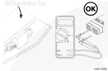 With the accelerator pedal depressed, measure the resistance. The multimeter must show 2000 to 3000 ohms when the accelerator pedal is down. If the resistance is not within the specification, there is a problem with the accelerator pedal/lever position +5 volt supply wire or the accelerator pedal/lever position return wire in the OEM harness, provided the accelerator position sensor has been previously checked. Repair the OEM harness according to the manufacturer’s procedures.