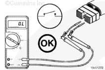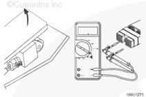 Turn the keyswitch to the ON position. Adjust the multimeter to measure VDC.