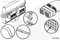 The ECM receives constant voltage from the batteries through the switched battery wires that are connected directly to the positive (+) battery post. There are four in-line fuses in each of the unswitched battery wires to protect the ECM. The ECM receives switched battery input through the keyswitch wire, when the keyswitch is turned on. The battery return wires are connected directly to the negative (-) battery post.