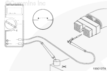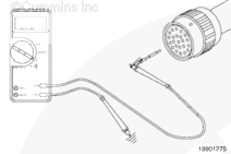 Set the multimeter to measure VDC. Turn the keyswitch to the ON position. Insert a test lead into one of the unswitched battery supply pins in the 23-pin OEM connector, OEM side. Touch the other multimeter probe to the engine block and measure the voltage.