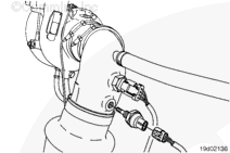 Disconnect the sensor from the engine harness. Slide the locking tab sideways. Push down on the button toward the rear of the connector and disconnect from the sensor.