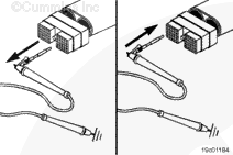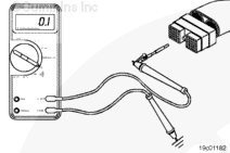Isolate the cruise control/PTO resume/accel switch circuit as described in the previous section. Turn the vehicle keyswitch to the ON position. Adjust the multimeter to measure VDC. Insert a test lead into the cruise control/PTO resume/accel switch signal of the OEM harness connector. Connect the test lead alligator clip to the positive (+) multimeter probe. Touch the negative (-) multimeter probe to the engine block ground and measure the voltage. The multimeter