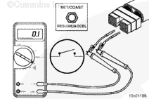 If the resistance values are correct in the previous checks, the cruise control/PTO set/coast signal and cruise control/PTO resume/accel signal