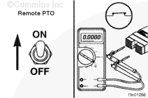 Insert the test lead into the remote PTO switch signal pin in the OEM harness connector and connect it to the multimeter probe. Touch the other probe to engine block ground.