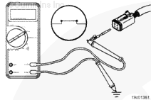 Insert a test lead into the ECM battery supply negative (-) pin of the ECM power connector. Attach it to a multimeter probe. Touch the other multimeter probe to the engine block ground and measure the resistance. The multimeter must show 10 ohms or less.