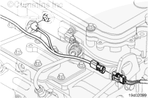 Disconnect the brake harness from the engine harness and from the rocker lever housing pass-through connectors.