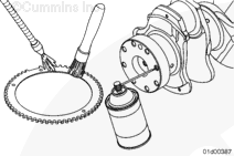 Clean the capscrew holes in the crankshaft. Use degreaser solvent such as contact cleaner, Part Number 3824510.