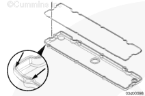 Install the valve cover gasket into the groove of the rocker housing cover. Press the molded gasket into the corners of the valve cover, then press the remaining gasket into the remainder of the groove.