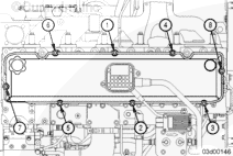 Install and tighten the valve cover mounting capscrews. Start with the center capscrews and work outward in a spiral pattern.