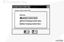 Use INSITE™, with the keyswitch in the ON position, to run the control valve click test.