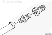 In this setup, a bolt, nut, and washers are needed to prevent fuel from flowing backwards and leaking from the unused drain line.