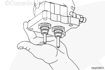 If the pump head check valves are working correctly, the pumping plungers will spring back to their original position. If the plungers do not spring back, replace the fuel pump head.