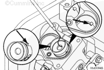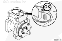 If damage to the camshaft, tappets, or camshaft housing is observed, it is possible the fuel pump is not receiving adequate lubricating oil. When replacing the fuel pump, inspect the gear housing to make sure no blockages exist in the oil supply to the fuel pump.