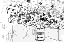 Turn the keyswitch ON and allow the lift pump to complete its cycle. After the cycle is completed, begin cranking the engine until fuel exits the drain line.