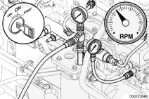 Attach the 1.09-mm [0.043-in] orificed diagnostic fuel line at the fuel injection pump cam housing Compuchek™ fitting. Route this hose into a collection container or into the fuel tank.