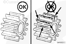 If the engine was in operation with the sea water system highly restricted due to a closed sea water inlet valve or a clogged sea water strainer, the sea water impeller must be inspected for damage.