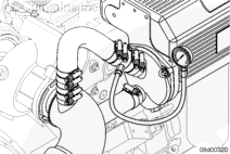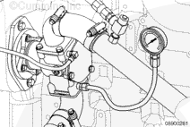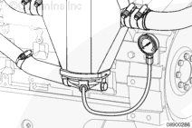 Install the fabricated test tool between the outlet side of the heat exchanger and the exhaust elbow. Check the pressure drop across the heat exchanger.