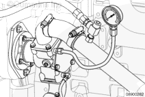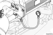 Check the sea water pressure at the inlet side of the aftercooler at the rated rpm. Record the reading. If the pressure drop between the sea water pump outlet and the aftercooler inlet exceeds the maximum specification, check or replace the fuel cooler.