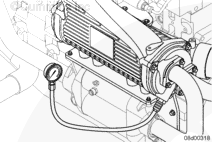 If the pressure drop between the inlet side of the aftercooler and the outlet side of the aftercooler is within specification, attach the pressure gauge to the gear oil cooler drain plug located on the outlet and check for pressure drop across the gear oil cooler.