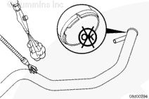 Do not remove the pressure cap from a hot engine. Wait until the coolant temperature is below 50°C [120°F] before removing the pressure cap. Heated coolant spray or steam can cause personal injury.