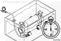 Submerge the gear oil cooler into a tank of water. Rotate the cooler to allow any trapped air to escape. Allow the cooler to remain submerged for one minute.
