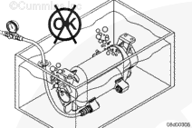 Fabricate a test fixture to seal the sea water connections, or use connector hoses with a quick disconnect air connection to supply a regulated test pressure of 276 kPa [40 psi] to the sea water side of the gear oil cooler.