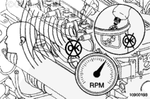Operate the engine at high idle, and use a solution of soapy water to spot intake air leaks.