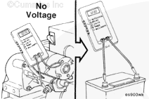 If the multimeter indicates system voltage at the S terminal, but the starter does not engage, the starting motor solenoid is malfunctioning and the starter must be replaced. Refer to Procedure 013-020 in Section 13.