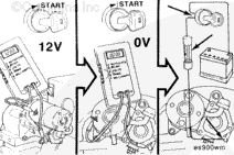 If the wire connecting the starter solenoid and starter switch is not loose or damaged, and the starter will not operate, remove the cable connecting the starter and starter solenoid from the solenoid terminal.