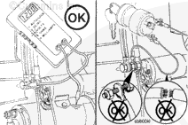 If the multimeter indicates system voltage at the starting motor battery terminal, check the voltage at the starting motor solenoid S terminal, when the starting switch is energized.