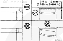 Thoroughly clean the cup plug hole using Scotch-Brite™, or equivalent. Use spray cleaner, Cummins Part Number 3375433, or equivalent, to perform a final clean of the bore.
