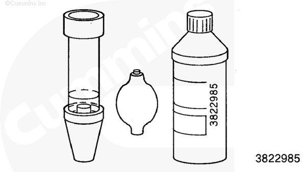 Used to detect leaks. Includes part number 3822986 test fluid, part number 3822987 adapter, and part number 3877612 instructions.