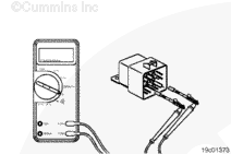 With the keyswitch on, measure the voltage at the fuel lift pump relay signal pin on the engine harness relay connector. A measurement of 12 VDC must be indicated. If 12 VDC is not indicated check the ECM for the proper calibration and contact the local Cummins Authorized Dealer.