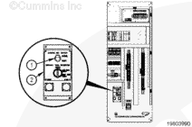 For generator sets using the PowerCommand Supervisor 3300 mounted in the Generator Interface Box, the ECM keyswitch (1) is mounted within the customer terminal box above the customer connection terminal connection strip (2).