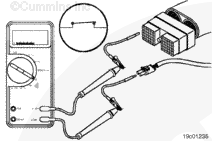 The multimeter must show voltage of 5.5 VDC or less. If the voltage is incorrect, there is a short circuit from the return wire to an external voltage source.