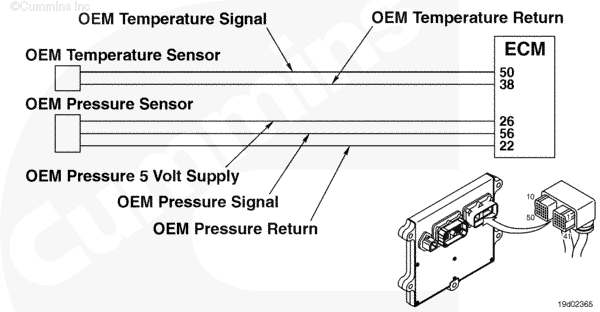 The OEM pressure or temperature sensor input will vary, depending on application. Refer to the OEM troubleshooting and repair manual for sensor location.