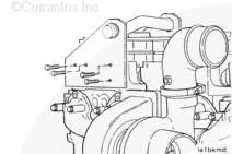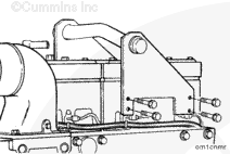 In installations such as short and medium nose conventional chassis, the factory installed rear engine lifting bracket is usually removed due to space constraints. In this case, the portable rear engine lifting bracket, Part No. 3823920, will be required to install the engine into the chassis. Follow instructions for the rear engine service lifting bracket installation in Procedure 000-001-999.