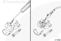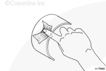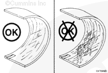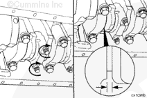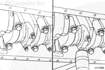 NOTE: Normal bearing wear produces a smooth finish which will wear into the copper lining. Exposed copper does not always indicate worn bearings. If large areas of copper lining are visible in the bearings before the engine has accumulated 240,000 kilometers [150,000 miles] or 3,750 hours, inspect the engine for contamination from fine dirt particles and correct the problem.